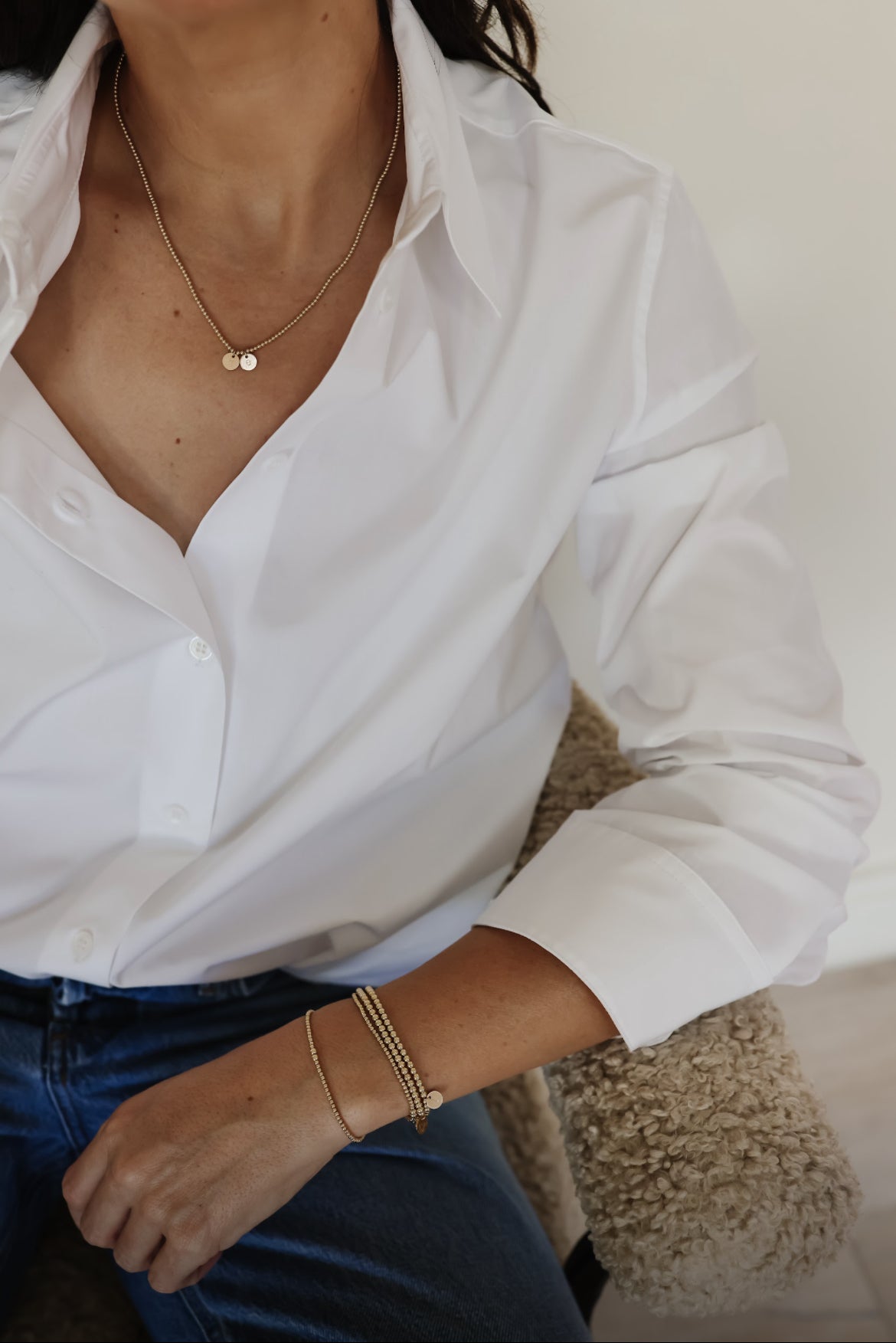 Goldie Necklace + Hand Stamped Letter Charm - 2mm gold filled beaded stretch necklace with dainty gold filled hand stamped letter charm