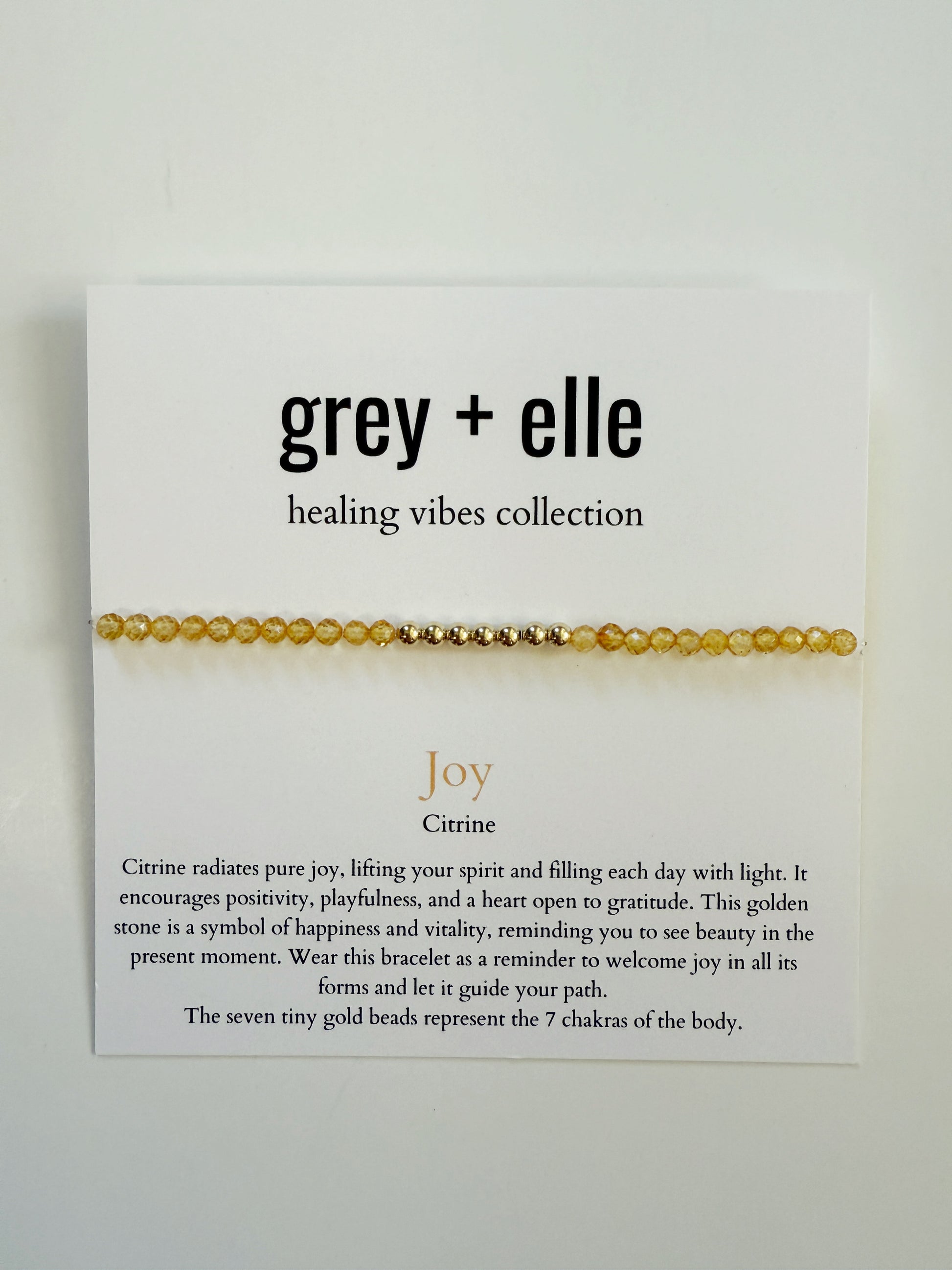 Citrine radiates pure joy, lifting your spirit and filling each day with light. It encourages positivity, playfulness, and a heart open to gratitude. The golden tone is a symbol of happiness and vitality, reminding you to see beauty in the present moment. Wear this bracelet as a reminder to welcome joy in all its forms and let it guide your path.