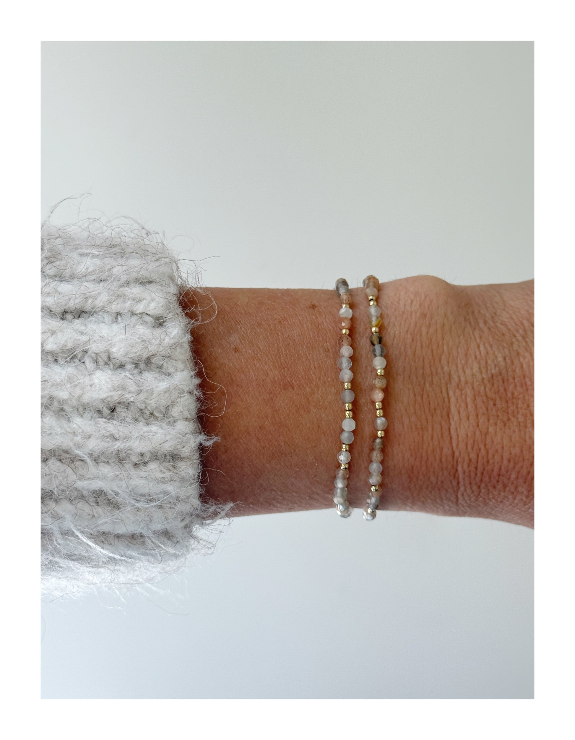 Softly luminous moonstone pairs beautifully with gold for a refined, feminine finish. A subtle statement that captures light and layers with ease.. This wrap bracelet is a bracelet that is made to be wrapped twice around the wrist.